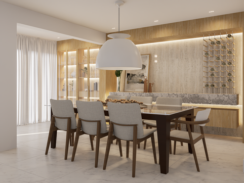Com esta solução, você pode integrar ou separar a sala de jantar da cozinha sempre que desejar. A escolha depende do momento: um almoço íntimo, uma recepção entre amigos ou simplesmente a rotina do dia a dia.
