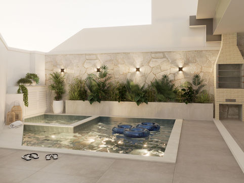 Entre pedras naturais e madeira, cores suaves e texturas que abraçam, criamos um refúgio.